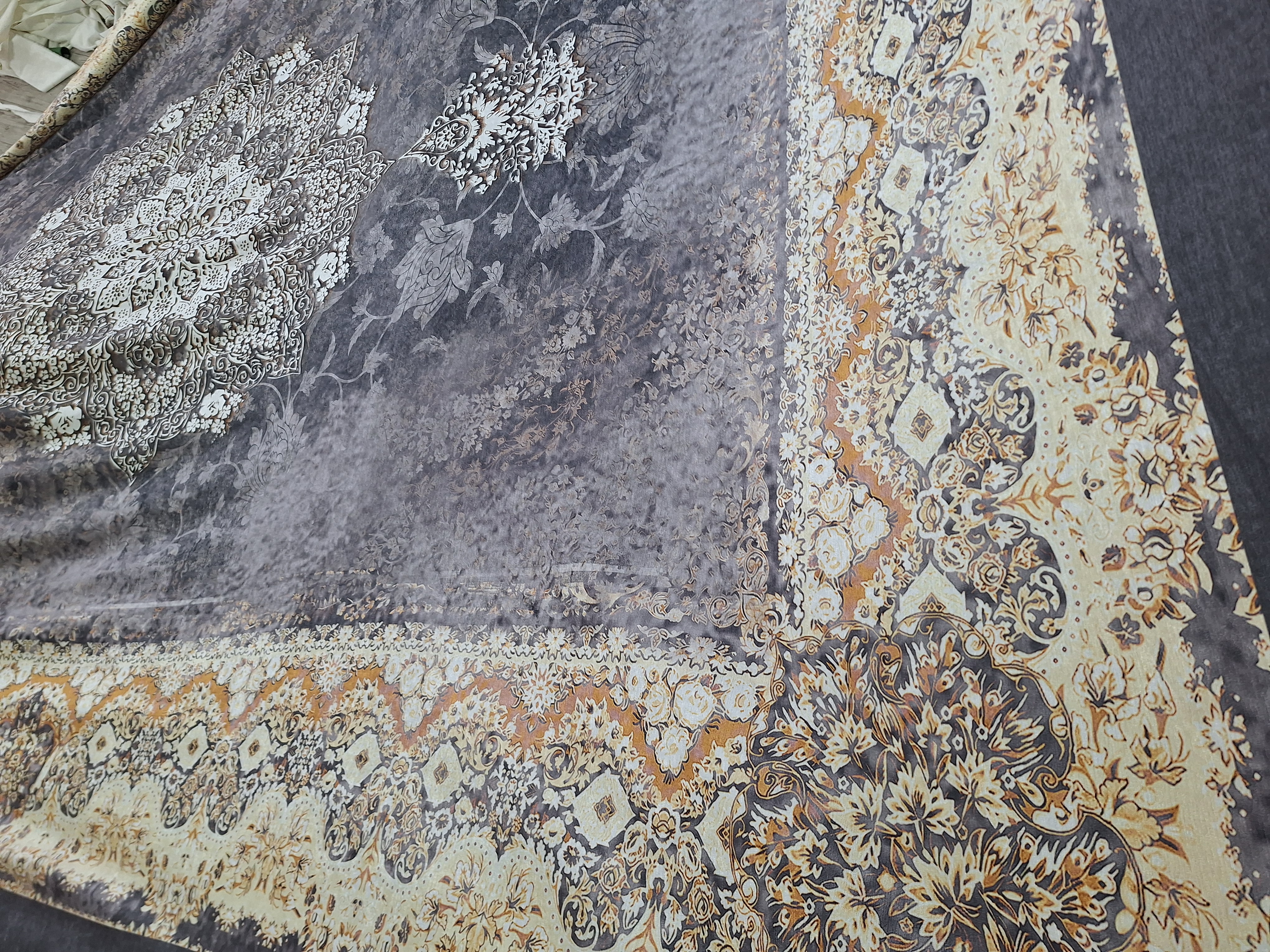 روفرشی کشدار مخمل شانل 6متری طوسی طلایی f-1100 (نسخه‌تیره)
