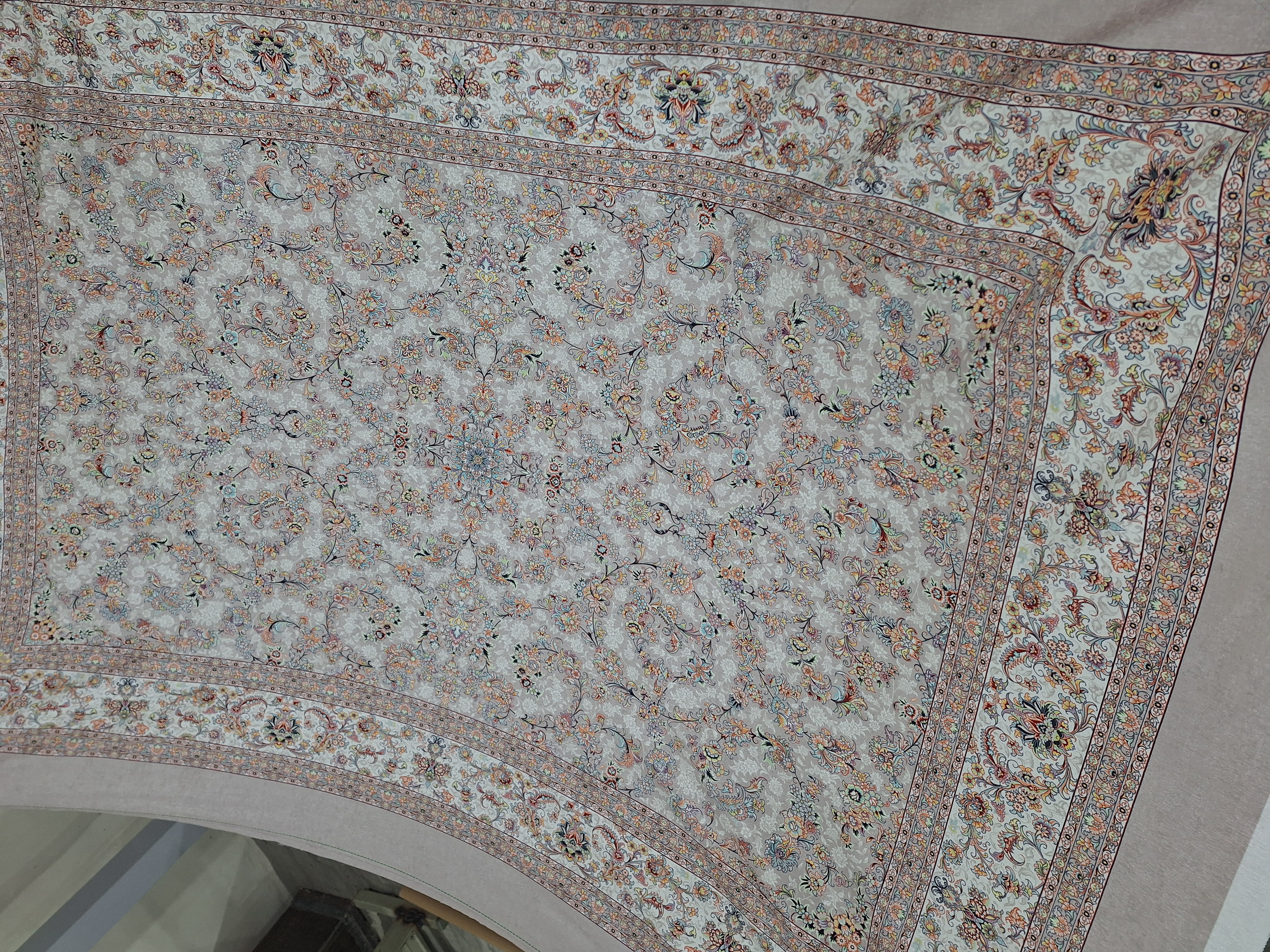 روفرشی دقیقاً بر اساس اندازه‌ی فرش شما دوخته می‌شود تا کاملاً فیت باشد و کش‌ها به‌درستی زیر فرش قرار بگیرند و از بالا آمدن گوشه‌ها جلوگیری شود.