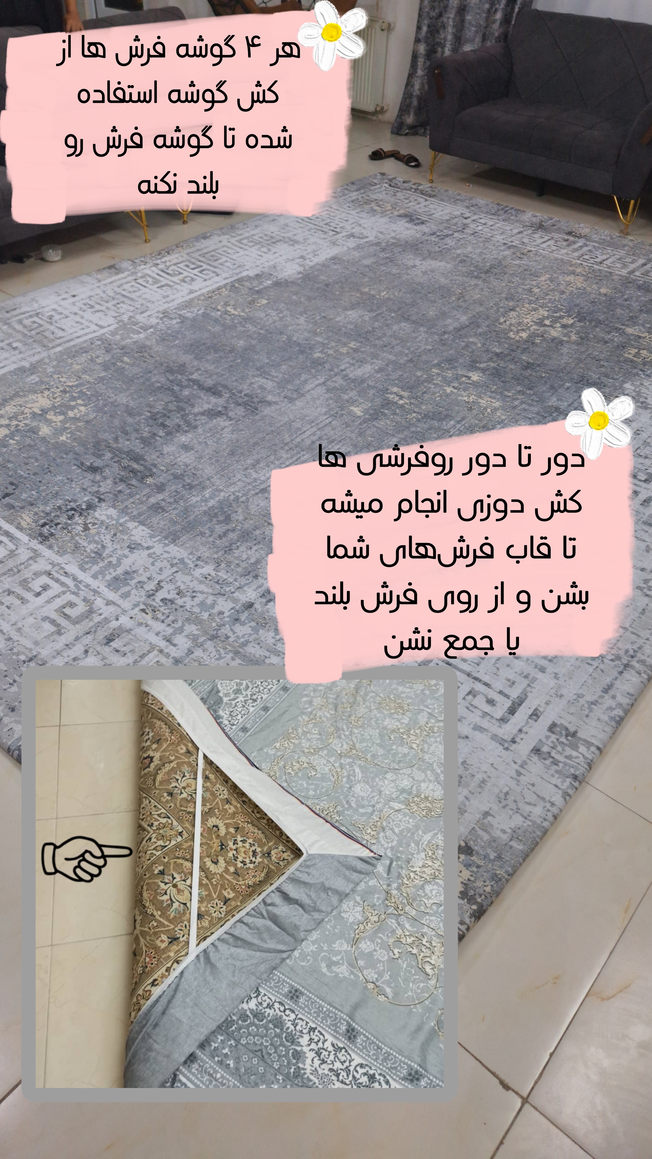 دوخت تمیز، جنس مقاوم و رنگ ثابتش باعث میشه هم ظاهر خونهتون شیکتر بشه، هم فرشهاتون تمیزتر بمونن 😍